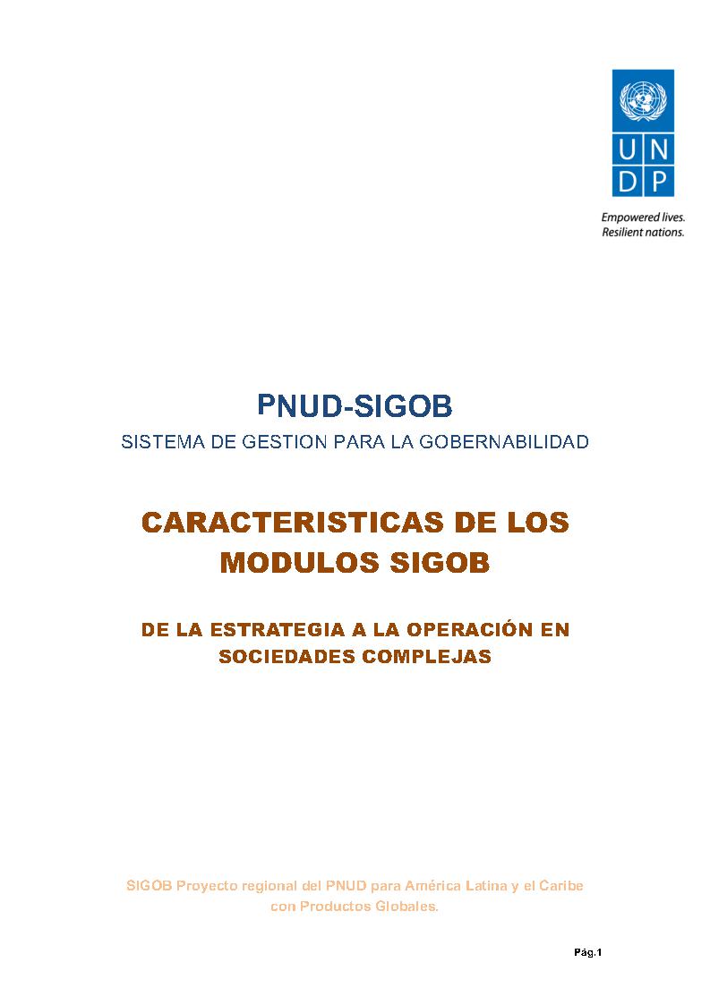 Esta es la oferta corporativa del PNUD en materia de gestión de la alta dirección, o Centros de Gobierno. En ella se detallan las principales características de los módulos que abarcan distintas áreas de la conducción políticoinstitucional. El SIGOB es un producto regional del PNUD para América Latina y el Caribe con productos globales, y su objetivo es fortalecer las capacidades de gestión de la alta dirección del Estado para generar y/o mantener las condiciones de gobernabilidad democrática, es así que consideramos que nuestros países no basta una buena gestión, sino que además desde aquí se debe propiciar.