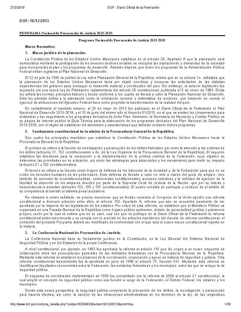 El Programa Nacional de Procuración de Justicia 2013-2018 plantea dos estrategias: la primera institucional, desde la Procuraduría General de la República, con los cuatro objetivos planteados, y la segunda a partir de los trabajos de coordinación de la Conferencia Nacional de Procuración de Justicia.