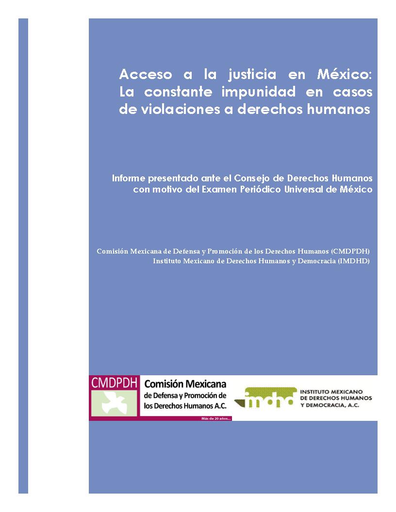 A pesar de diversas reformas recientes en materia de justicia y derechos humanos, la impunidad en México continúa siendo una constante. Según distintos informes, en México la impunidad alcanza niveles superiores al 98%, siendo que tan sólo alrededor de 1.5% del total de las denuncias presentadas (se estima un 20% del total de los delitos cometidos) llegan ante un juez. Diversos factores continúan obstaculizando el acceso a la justicia y la protección jurídica de los derechos humanos. Por un lado, aún son insuficientes los recursos legales adecuados que permitan garantizar la eficacia del sistema de procuración y administración de justicia, así como la implementación adecuada del nuevo sistema acusatorio de justicia penal, la cual deberá concluir a más tardar en el año 2016.