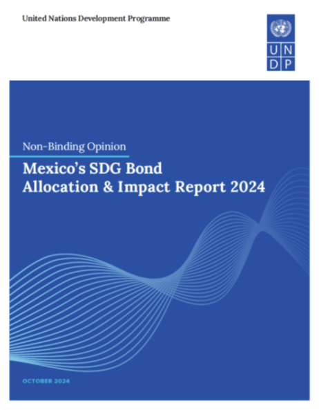 Por cuarto año consecutivo, el Programa de las Naciones Unidas para el Desarrollo (PNUD) en México publica una opinión no vinculante sobre el Reporte de Asignación e Impacto del Bono ODS 2024. En este documento, el PNUD analiza la medida en la que la Secretaría de Hacienda y Crédito Público (SHCP), responsable de la elaboración del Reporte, cumple con los principios establecidos en los Estándares de Impacto de los ODS. Además, se hace una valoración sobre el reporte de asignación de recursos del Bono, así como sobre el reporte de resultados, a la luz de lo que se establece en el Marco de Referencia del Bono Soberano de los ODS. Finalmente, se analizan las dinámicas detonadas a partir de las emisiones del Bono y de los procesos de reporte.