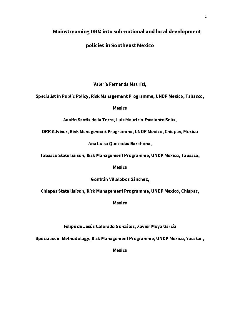 El documento “Incorporación de la Gestión del Riesgo de Desastres (GRD) en el desarrollo de políticas a nivel subnacional y local en el Sureste de México” (Mainstreaming DRM into sub-national and local development policies in Southeast Mexico), publicado en la plataforma PreventionWeb de la Oficina de las Naciones Unidas para la Reducción del Riesgo de Desastres (UNDRR), comparte el aprendizaje y metodologías puestas en marcha por el PMR a lo largo de los 16 años. Se espera estas recomendaciones y metodologías permitan a los gobiernos subnacionales de los países de América Latina y el Caribe incrementar la resiliencia de sus territorios.